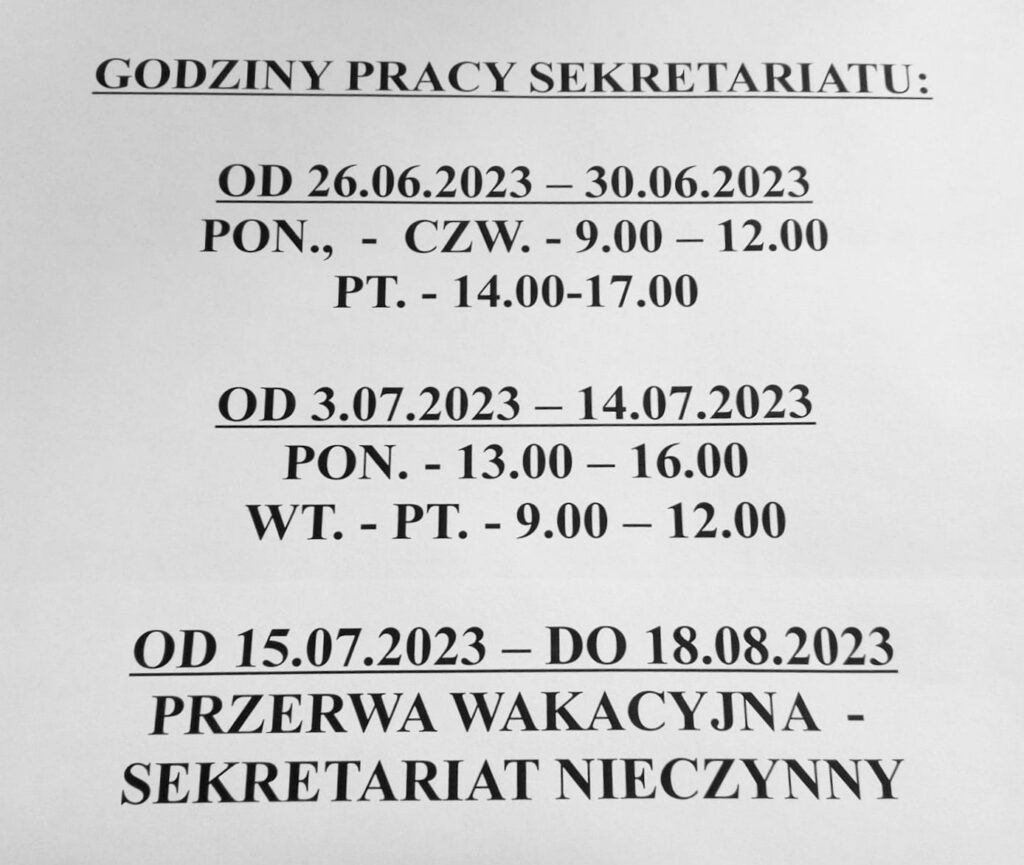 Godziny pracy sekretariatu
